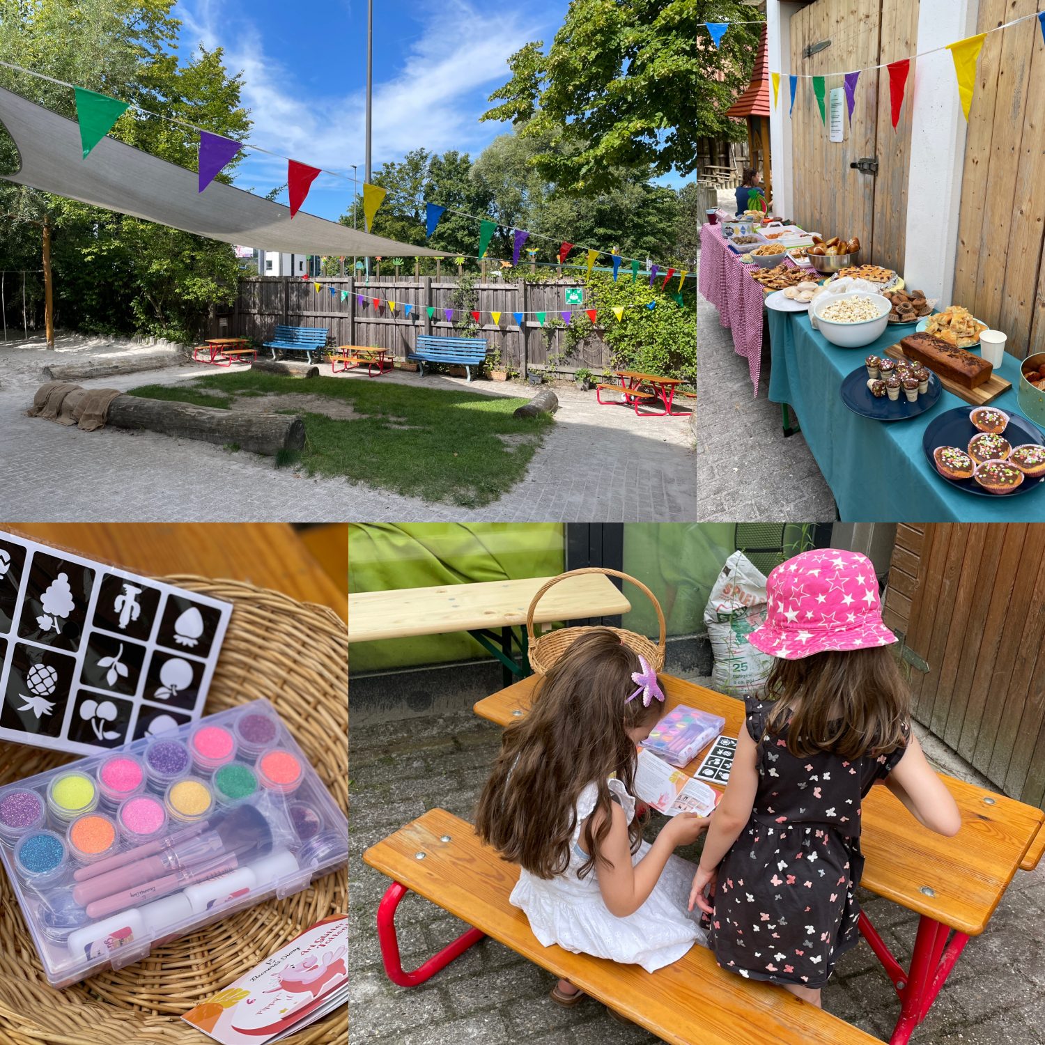 Das neue Kita-Jahr ist gestartet und wie jedes Jahr haben wir die neuen Eltern und Kinder mit unserem schönen Sommerfest begrüßt und uns von den frischgebackenen Schulkindern verabschiedet. Für das leibliche Wohl sorgte ein prächtiges Kuchen- und Snackbuffet – gesponsert von den Eltern – sowie kühle Getränke. Die Kinder hatten ihren Spaß bei Dosenwerfen, Eierlaufen, Sackhüpfen und Ringewerfen. Die Glitzertattoos waren wieder ein besonderes Highlight für unsere kleinen Strolche, während die großen Strolche und das Team bei bestem Sommerwetter ein schönes Fest feierten.